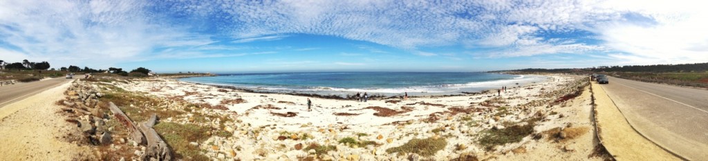 Wir fahren weiter, wollen wir doch heute auch dem gefürchteten Gruppenkoller vorbeugen und ein geleitetes Ausscheren ermöglichen. In der nächsten Stunde haben wir freie Zeit, um Carmel anzuschauen, oder am Strand den Pazifik zu genießen. Ein Teil der Gruppe macht sich auf in das Städtchen, in dem Clint Eastwood bis 1988 Bürgermeister war, um eine Kleinigkeit zu essen. Ein anderer geht direkt hinunter zum Strand. Erst einmal die Füße ins Wasser halten! Doch der Pazifik hat seine eigene bezwingende Kraft und so steht nach drei Minuten fest, dass ein richtiges Bad in den Wellen unausweichlich ist. Gar nicht so kalt war’s und dafür einzigartig! Einmal bricht sogar eine Welle über unseren Köpfen zusammen, ist also mindestens 2 Meter hoch… (das kennen wir gar nicht aus der Nord- bzw. Ostsee, aber hier in Amerika ist ja sowieso alles eine Nummer größer).