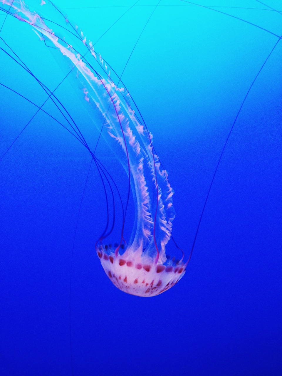 Leider verbreitet der Schrecken der sieben Weltmeere derzeit nur Furcht im freien Ozean und hält sich vorübergehend nicht im Aquarium auf. Schade eigentlich. Aber zum Glück hat das sich über fünf Häuserblocks erstreckende Tiefseeparadies noch andere Sensationen zu bieten. Quallen zum Beispiel, die Leuchtstofflampen der Meere. Oder Unmengen an Krabben, Schwarmfischen, Seepferdchen, Pinguinen, Kraken und anderem Getier. Damit man bei so einem Treiben nicht den Überblick verliert, weisen Infotafeln und -videos auf die Lebenswelt des jeweiligen Meeresbewohners hin; oder auf seine spätere Integration in den Speiseplan des Menschen. So machen ausgestellte Fischkonserven und geschmackvoll dekorierte Krabbenplatten durchaus Appetit.