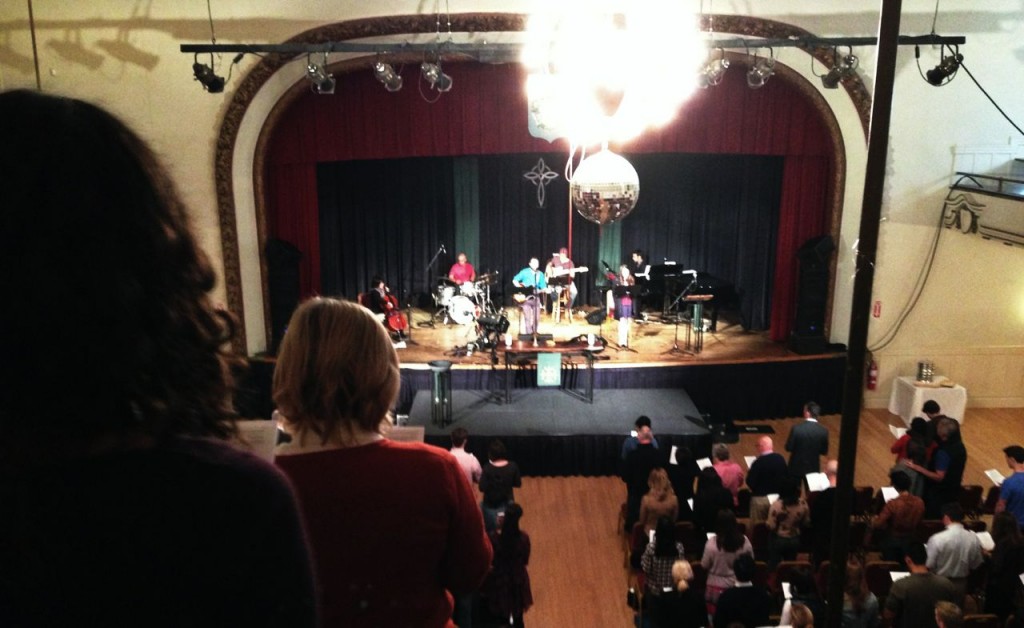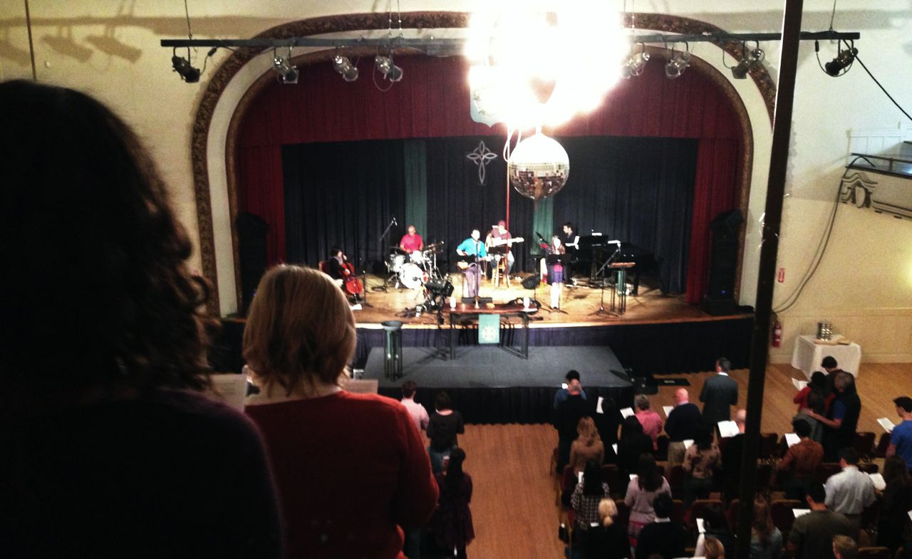 Schon der Anblick der Kirche ist für uns eine Überraschung – sie ist nämlich keine Kirche. Unter der Woche ist sie ein russisches Kulturzentrum, dass nur Sonntags für die Gottesdienste gemietet wird. Weicher Teppich auf dem Boden führt uns einige Stufen nach oben, direkt vor einen Informationstisch, hinter dem eine freundliche junge Dame steht, – Mitglied in der Gemeinde- und uns mit einem freundlichen: “How are you?” begrüßt. Sie erklärt uns, dass es nebenan Kaffee und Donuts, inklusive einem netten meet and greet gibt. Ganz anders als zuhause, wo man den Kirchenkaffee frühestens NACH dem Gottesdienst bekommt. Wir setzen uns in einen netten Veranstaltungssaal, auf dessen Bühne schon die Instrumente einer Band aufgebaut sind. Es wird also kein Orgelspiel geben. Wir werden uns während des Gottesdienstes noch so manches mal wundern.