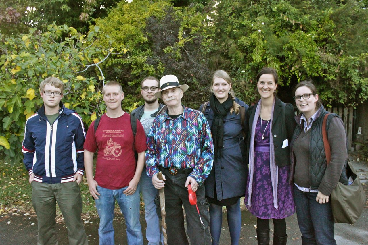 Ein Hut, ein Stock, zwei Hunde und ein schweißtreibender Spaziergang im Stechschritt erwarteten die Studierenden, die ganz spontan den großartigen Autor und Social Media Pionier Howard Rheingold treffen durften. In seinem engen Zeitplan bot er uns ein Gespräch während seines täglichen Hundespaziergangs in Mill Valley an. Nach einer kurzen Begrüßung vor seinem Haus folgen wir, wie Jünger ihrem Propheten, Mr. Rheingold durch den kalifornischen Wald. Abwechselnd versuchte jeder und jede von uns den Internet-Visionär in ein Gespräch zu verwickeln. Unsere Erwartungen waren groß. Ist Rheingold doch als einer der großen Vordenker der durch das Internet und Social Media veränderten Gesellschaft. Aufmerksamkeit, Partizipation, Zusammenarbeit – was ist es, was das Denken und Forschen über die Gesellschaft 2.0 ausmacht? Was meint der visionäre Denker mit “network smarts” oder “Networked Individualism”? Viele Fragen, die wir ihm gerne gestellt hätten, doch der eher schüchterne Mann mit den großen Schritten, der ganz nebenbei noch die Hinterlassenschaften seiner Hunde oder herumliegende Zeitungen einsammelte, wollte uns nicht richtig zum Zug kommen lassen und so entschieden wir, die Diskussion mit ihm doch eher schriftlich fortzuführen und im kommenden Semester uns dem Studium seiner Bücher (z.B. Net Smart – How to Thrive Online) zu widmen.